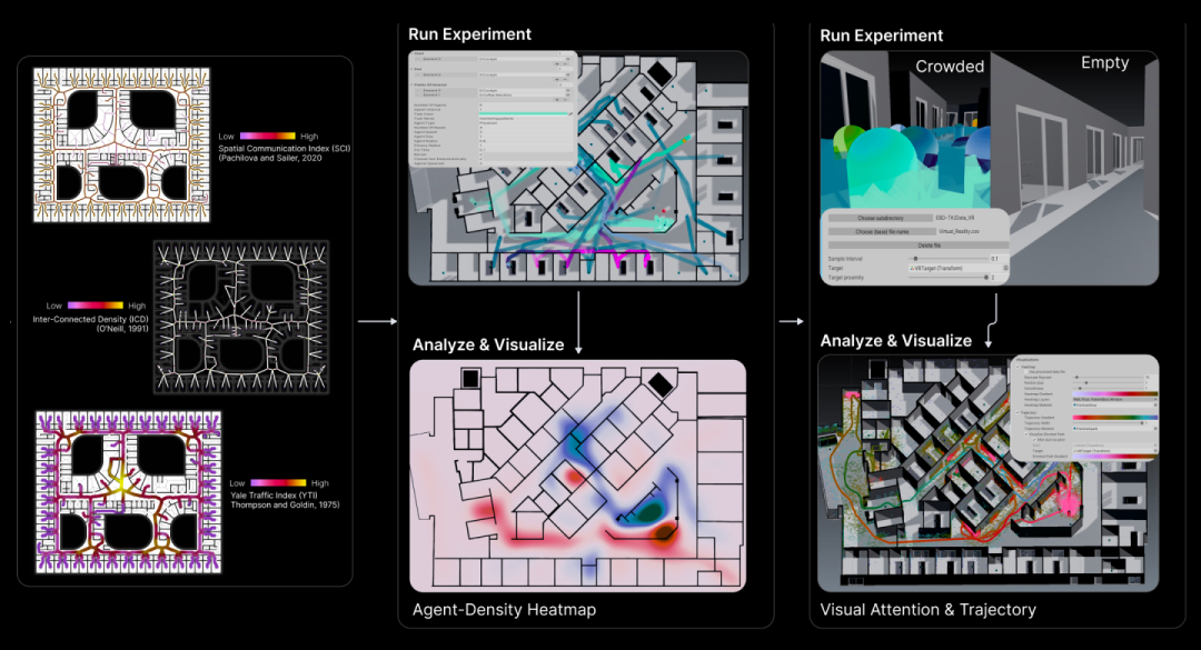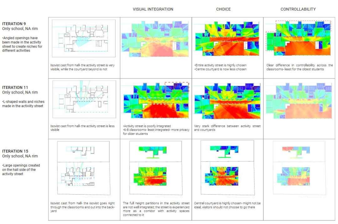 some explorations from an architectural design studio, which developed methods and workflows for user centric thinking in design. Here student designers used an iterative process of testing-modifying-retesting with spatial analysis (of the permeability and visibility structures), developing and testing speculations about the social impacts of their designs on the end users. Anklesaria, Freyaan & McElhinney, Sam. (2022)