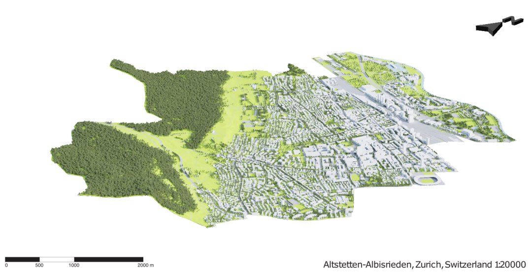 Altstetten-Albisrieden is a district west of Zürich. It covers 12.1 km2 and extends from the Limmat River to the Uetiliberg Foothills. The district relies on its natural geographic conditions and furnishes rich green spaces following the concept of a “Garden City” that has been promoted since the 1930s. Its diversity in building typology, residency and community provides a good testbed for future urban transformation,focusing on densification, optimizing spatial connectivity and greenery provision.