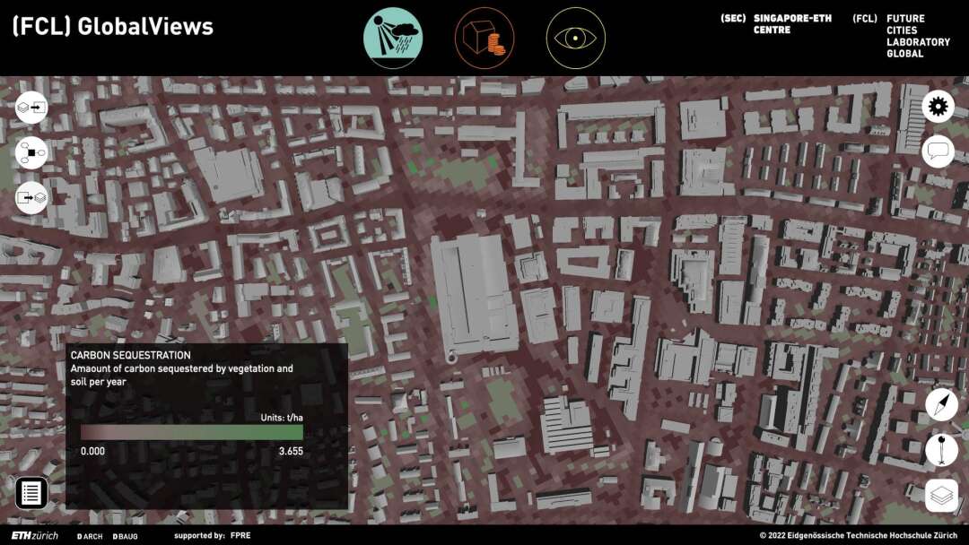 FCL GlobalViews is an interactive 3D model of Zurich that allows users to design urban planning scenarios by modifying the land cover. These scenarios are then used as input to calculate different ecosystem services e.g. air temperature, air quality, carbon sequestration and more. This allows to model and compare the impact of urban design on ecosystem services. Also, FCL GlobalViews allows to create real estate scenarios for building plots in Zurich according to the communal building laws and calculate their economic value. Combining the results of the ecosystem services analysis and the real estate assessment, the tool shows multiple dimensions of a development project in one single 3D model.