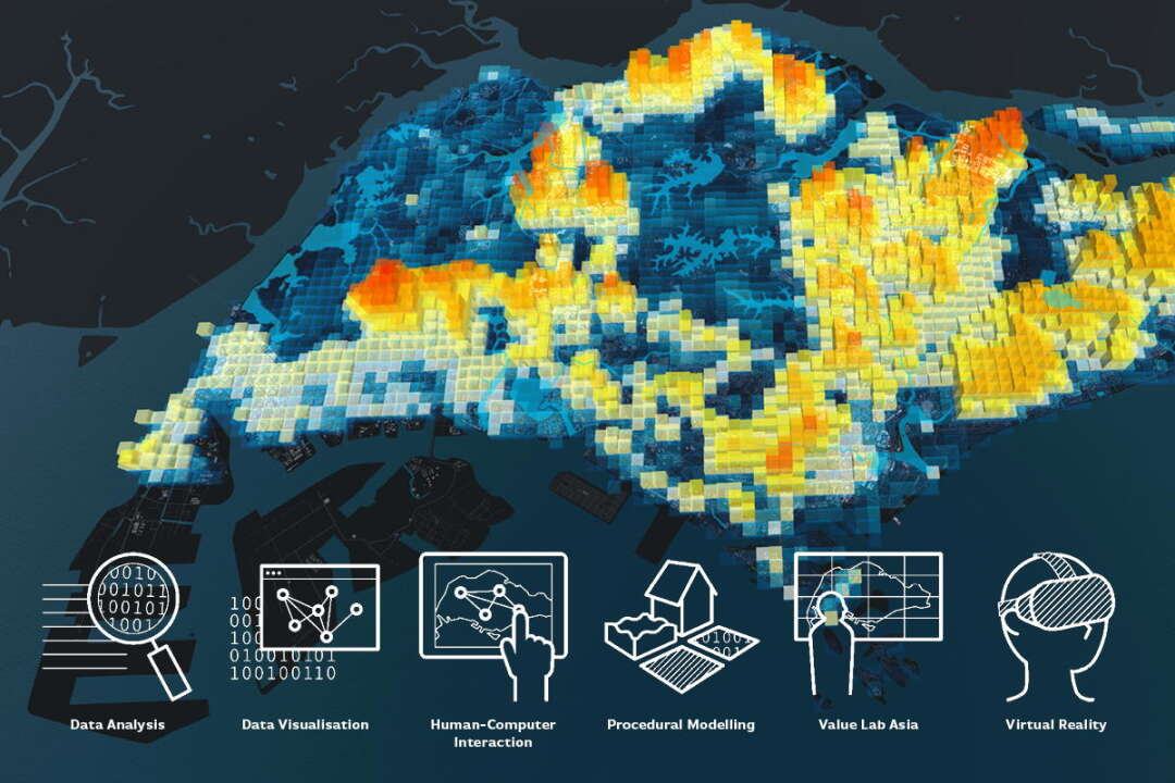 Singapore Views is an interactive visualization and presentation platform that allows researchers to commence and conduct their research projects via an interactive 3D-4D visualization. The platform supports raster and vector GEO data, legacy media (pictures, videos, texts), 3D models, scientific data and point clouds.